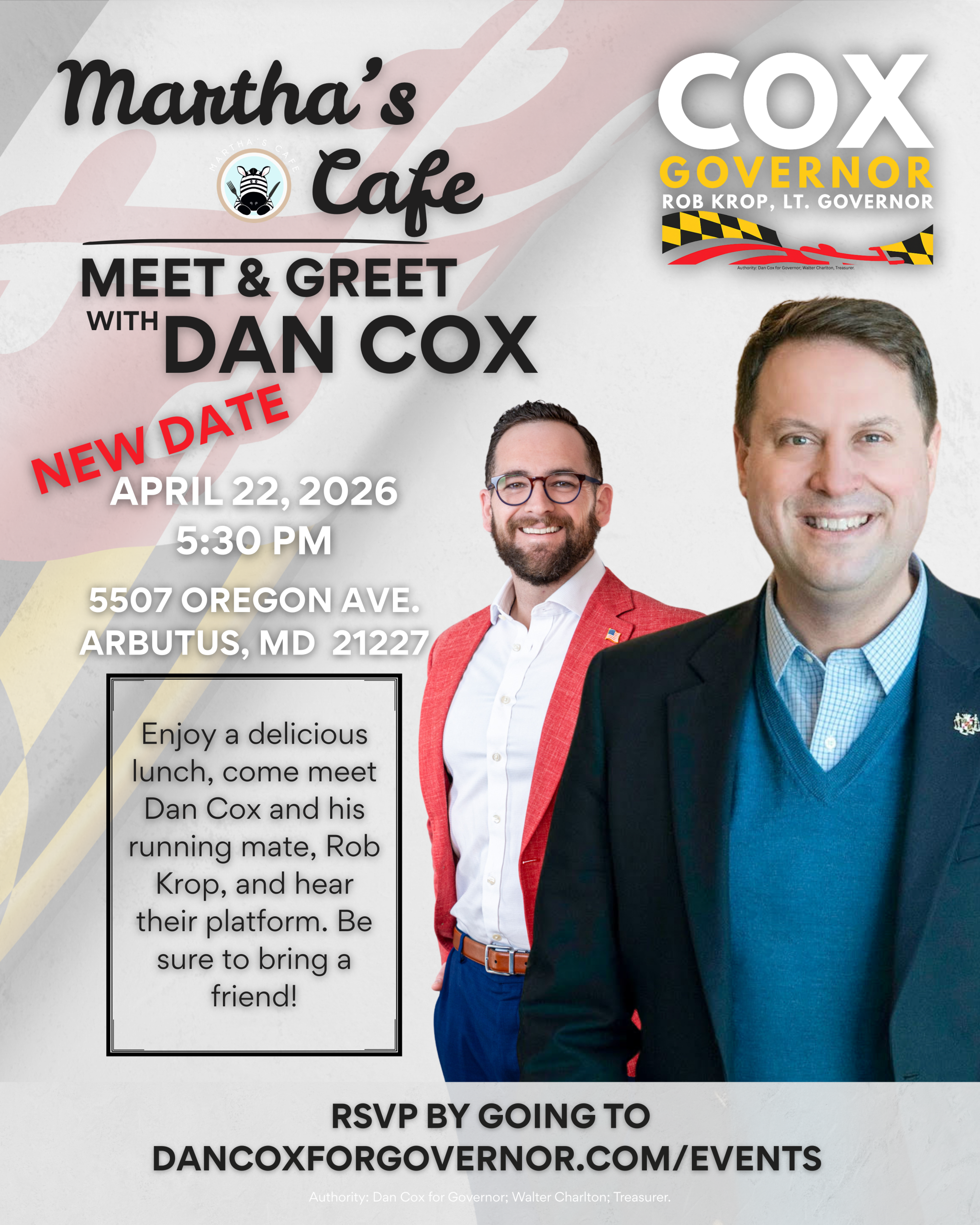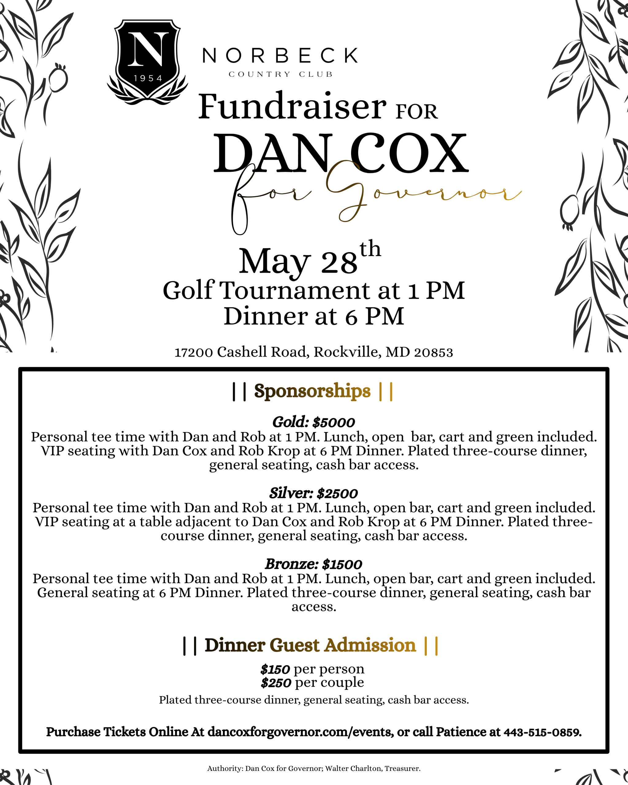 Authority: Dan Cox for Governor, Walter Charlton, Treasurer